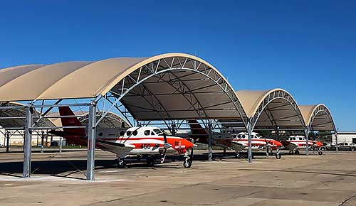 Columbus Air Force Base Aircraft Sunshades Building: 15 Custom aircraft sunshadesDimensions: Various, from 15,760 square feet to 26,455 square feetLocation: Columbus Air Force Base, MississippiPurpose: Aircraft sunshades 16081